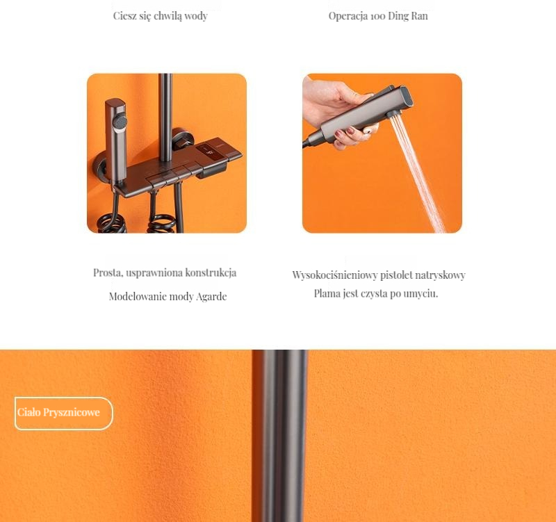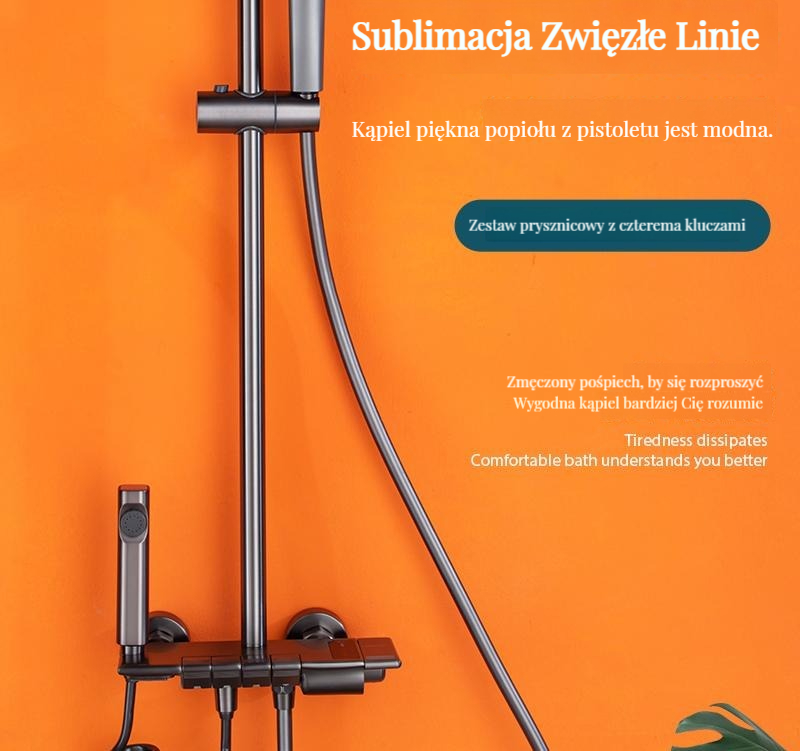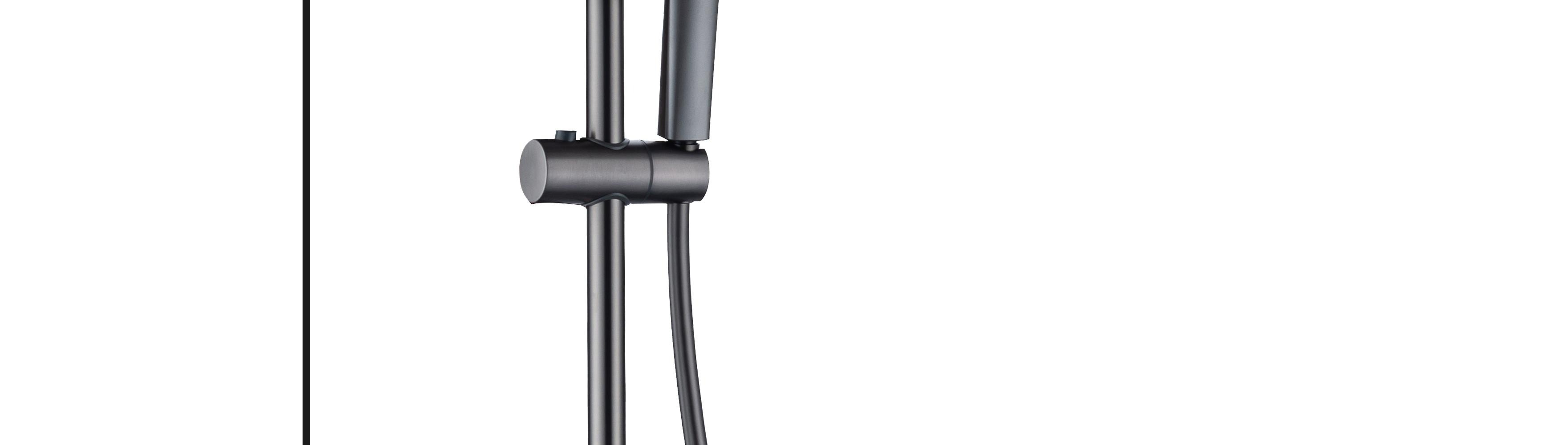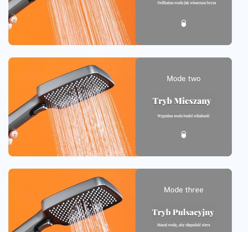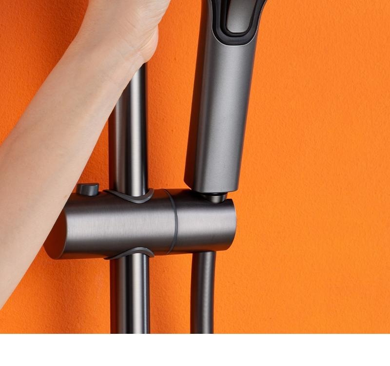Shower six-piece set. It features a smart thermostat, digital display, hydronic power, piano buttons, brass body and four mode setting options and can be dispatched within 24 hours!