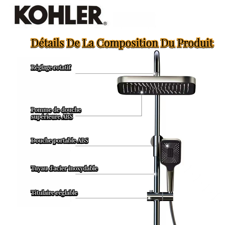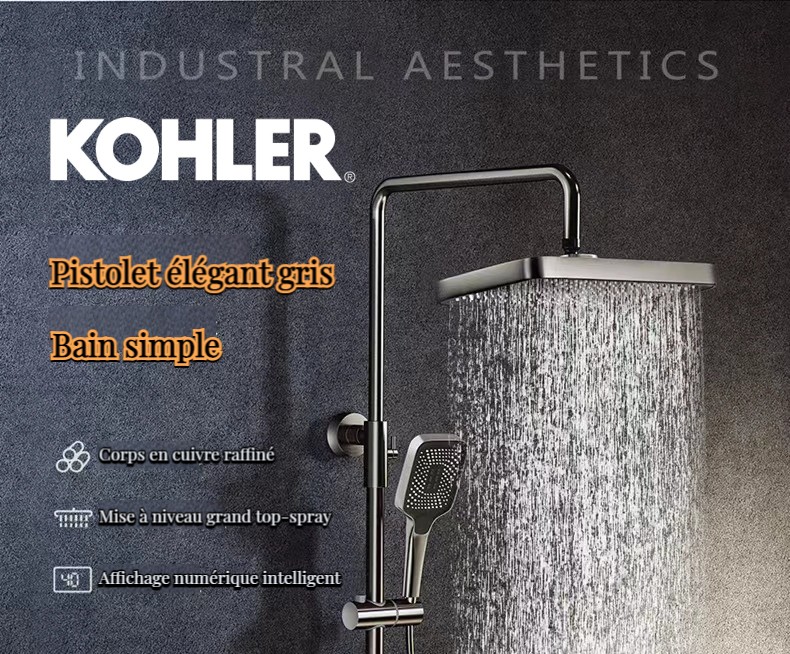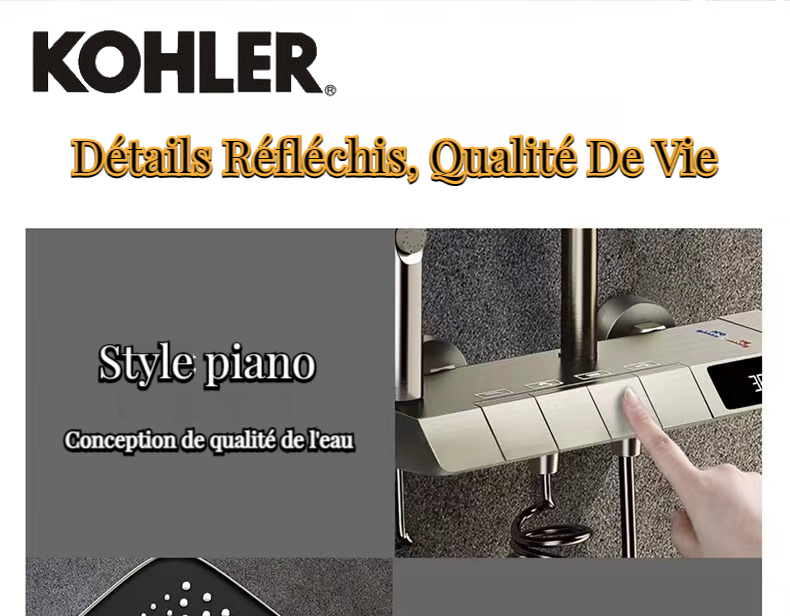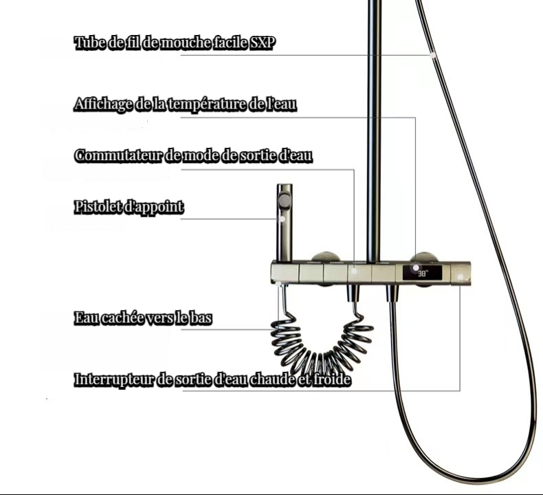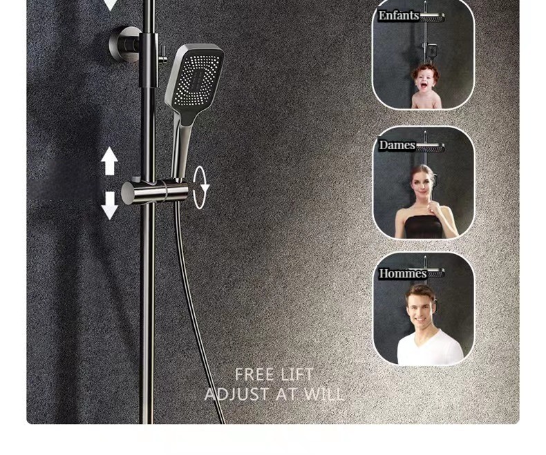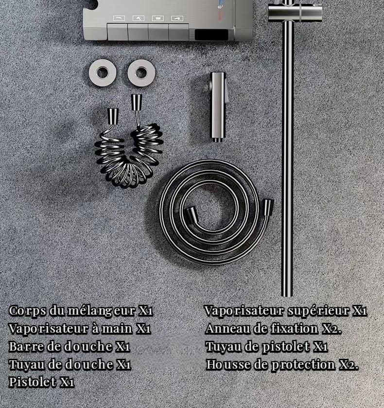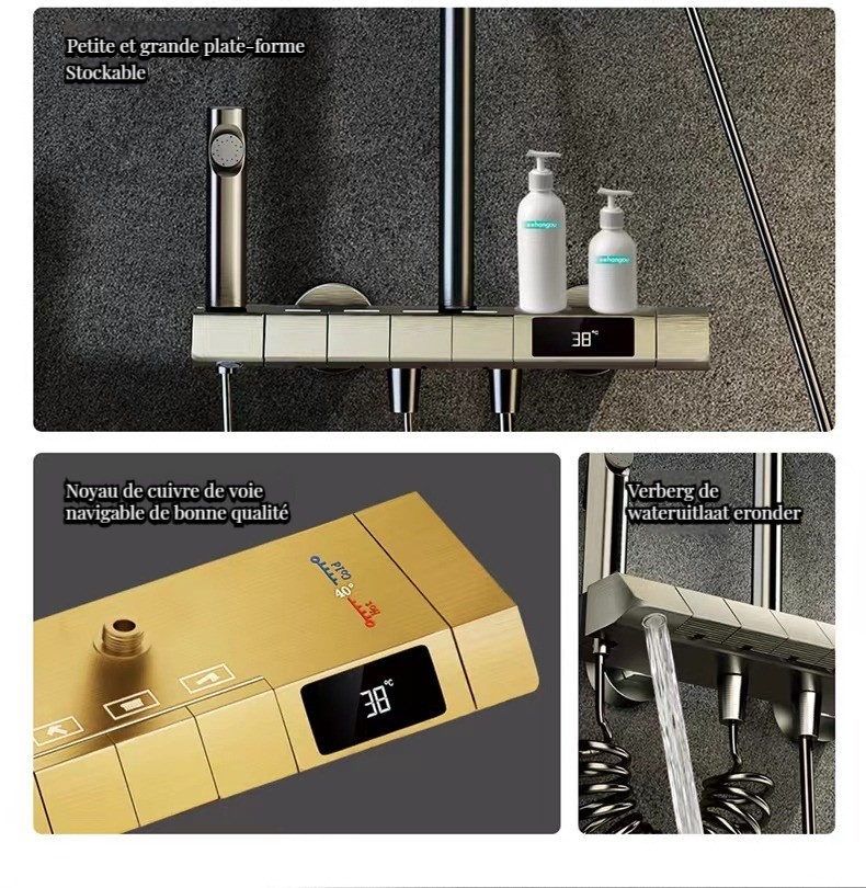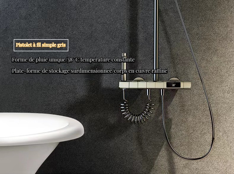 Ensemble de six pièces pour la douche. Il est doté d'un thermostat intelligent, d'un affichage numérique, d'une puissance hydronique, de touches piano, d'un corps en laiton et de quatre options de réglage de mode. Il peut être expédié dans les 24 heures !