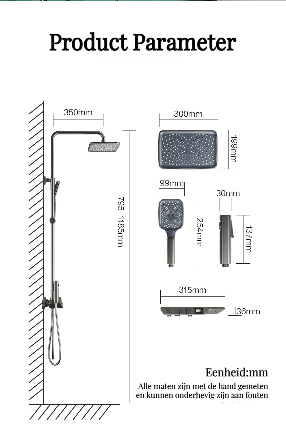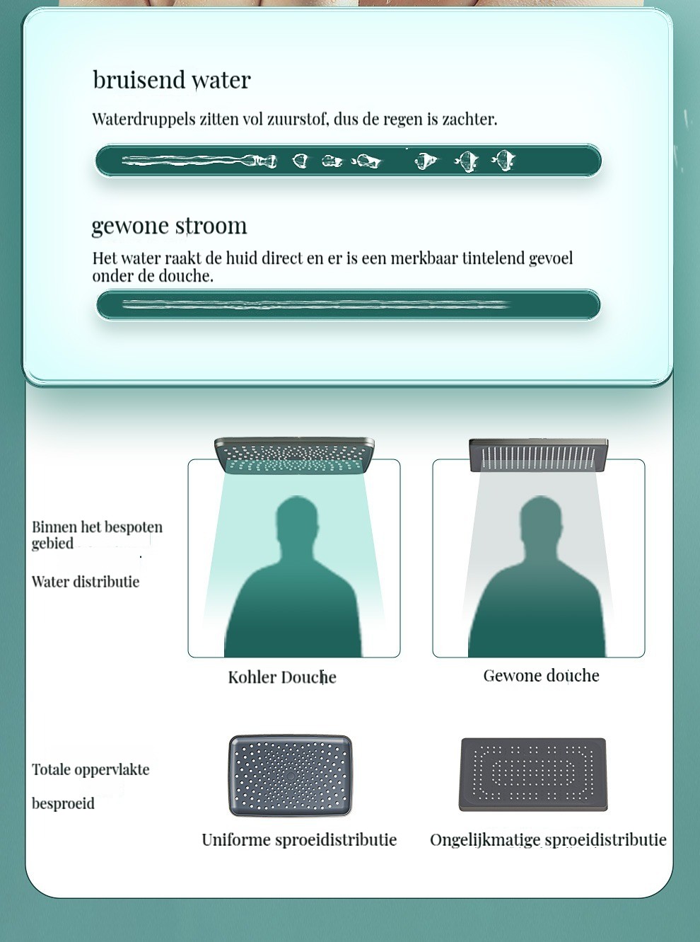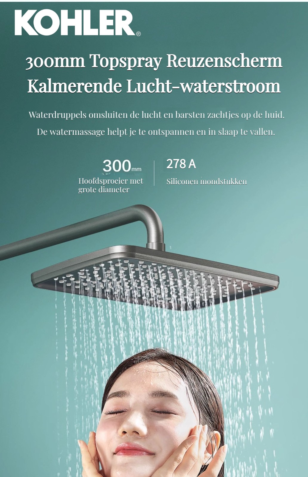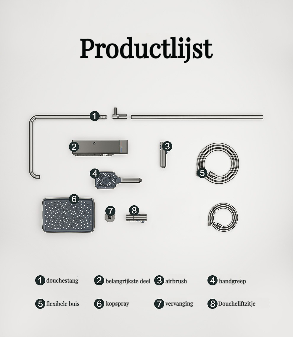 Zesdelige doucheset. Hij is voorzien van een slimme thermostaat, digitaal display, hydronisch vermogen, messing body en vier waterdoseringsstanden! Koop nu voor 50% korting!